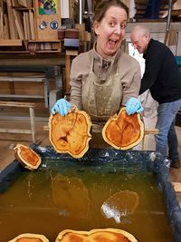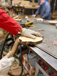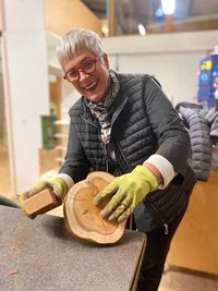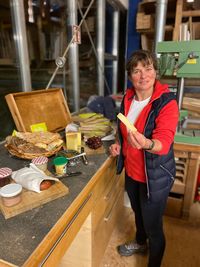 Zeitig vor der anstehenden Vorweihnachtszeit trafen sich am 26. Oktober 2020 wieder einige Rotarierinnen und Rotarier bei Freund Brosy in dessen Werkstatt Querholz in Bensheim, um die nächste Charge an Eibenscheiben liebevoll zu schleifen, bürsten und ölen. Diese umwerfenden Unikate stammen alle aus in Bensheim gewachsenen Eiben, die nun zu wunderschönen Scheiben verarbeitet wurden, die sich sowohl als Deko-Objekte, aber auch als Käsebretter oder sonstige Anrichte-Wunder eignen.