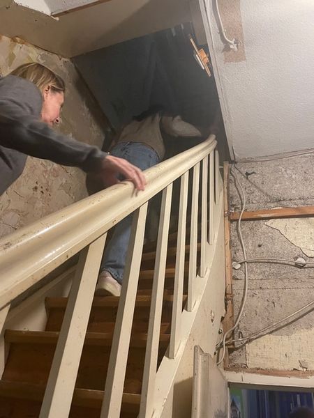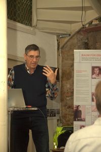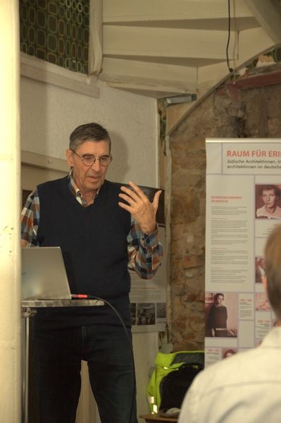Manfred Metzendorf führte uns zu Beginn ein in die bewegte Geschichte des Gebäudes. Die jüdische Gemeinde errichtete die Synagoge 1807 mit einem großen Betsaal und einer Empore für Frauen. Im Jahr 1900 erfolgte der Umzug in eine neue, größere Synagoge. Das alte Gebäude wurde verkauft und danach als Kurzwarengeschäft genutzt, bevor ein Friseur einzog. Nicht nur die Fassade, sondern auch die Inneneinteilung wurden umgebaut. Das Tonnengewölbe wurde entfernt, eine Zwischendecke eingezogen, das Dach aufgeschnitten, um hier eine Plattform für astronomische Beobachtungen einzubauen.