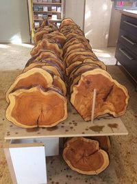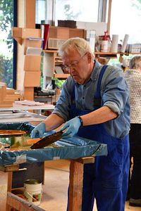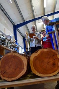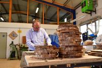 Diese Eibenscheiben galt es weiter zu bearbeiten: grob und fein schleifen, ölen und wieder trocknen. Mit den professionellen Maschinen an den großzügigen Werkplätzen hat es allen Anwesenden große Freude gemacht, aus diesem schönen über 40 Jahre alten Holz einzigartige Brettchen zu fertigen.