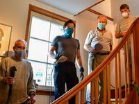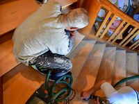Am Samstag, den 31. Oktober 2020, fanden sich im ehemaligen Schuldienerhaus in Lorsch Rotarier des Clubs Bensheim-Südliche Bergstraße zu einer besonderen »hands-on« Aktion, nämlich einer intensiven Schleifaktion für eine in die Jahre gekommene Holztreppe, zusammen. Die rotarischen Freunde Klaus Beck, Bernd Crusius, Frank Eden und Joachim-Felix Leonhard schliffen unter Aufsicht (und exzellenter Organisation und Mittun!) des fachkundigen Freundes Andreas Brosy in drei Gängen in nur vier Stunden die Flecken von den Treppenstufen und brachten so wieder das alte Holz in neuem Glanze zum Vorschein.