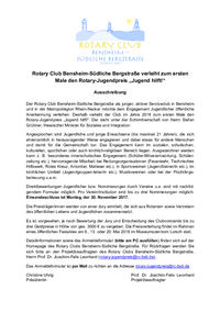 Der Rotary Club Bensheim-Südliche Bergstraße verleiht zum ersten Mal den Rotary-Jugendpreis an Jugendliche und junge Erwachsene (bis maximal 21…